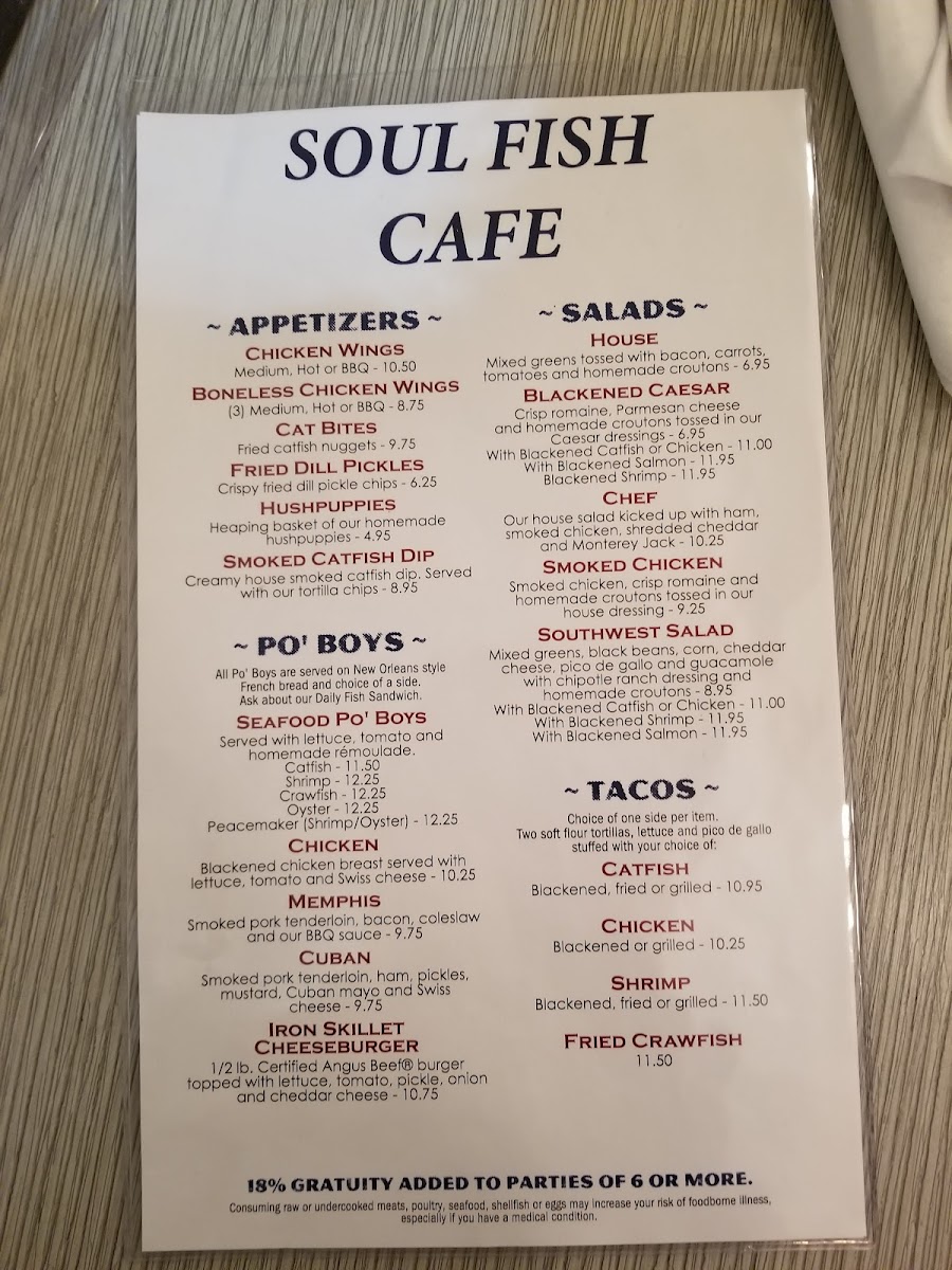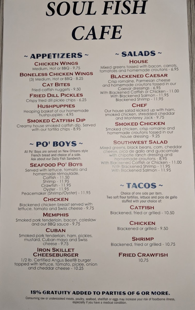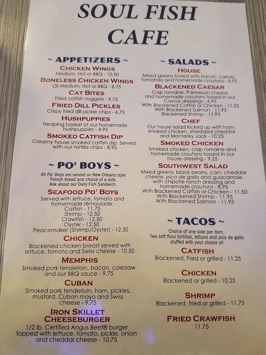 Every visit promises delectable highlights such as hushpuppies, fried crawfish, and the standout banana cake, which has won hearts for its moist texture and creamy frosting. The ambiance is relaxed, with friendly service that adds to a family-oriented vibe, ensuring a delightful dining experience. Don't forget to explore the off-menu specials and take advantage of the parking discount. At Soul Fish Café, every dish is a testament to flavorful Southern cooking, making it a must-visit for locals and tourists alike.