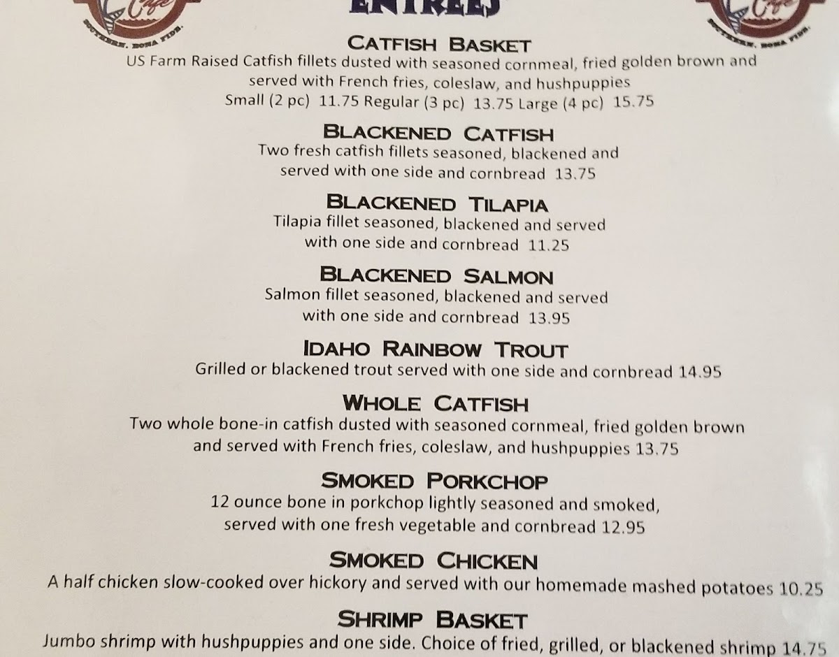Commeal dusted fried catfish and shrimp. Served with one side and hushpuppies